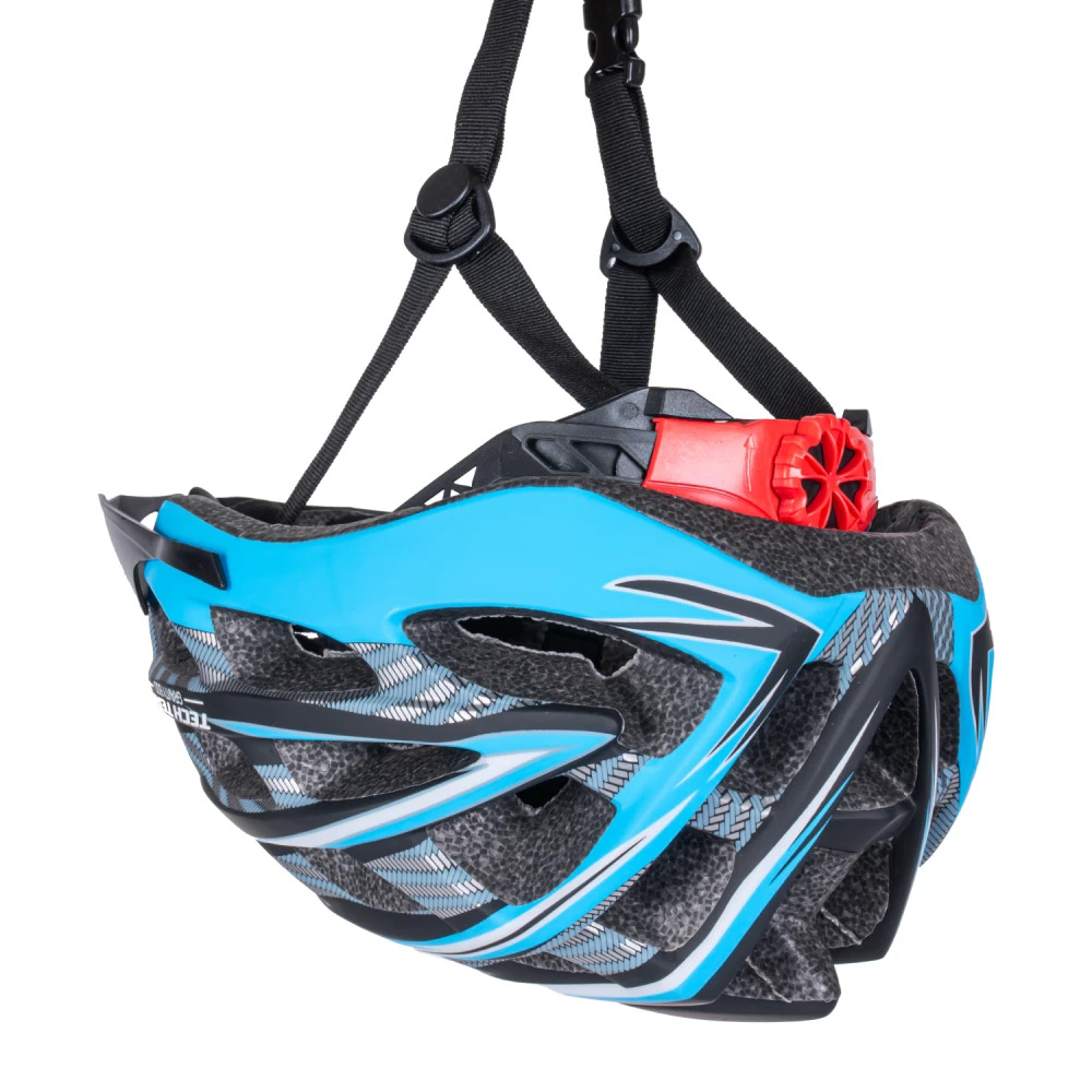 В составе есть поликарбонат, этот материал очень прочный и легкий. Аксессуар удобно сидит на голове, его с легкостью можно отрегулировать под необходимый вам размер. Имеется 8 отверстий, которые обеспечивают хороший проход воздуха и голова не будет так сильно потеть.