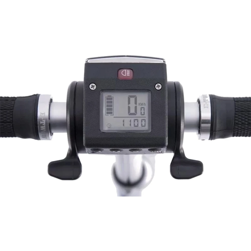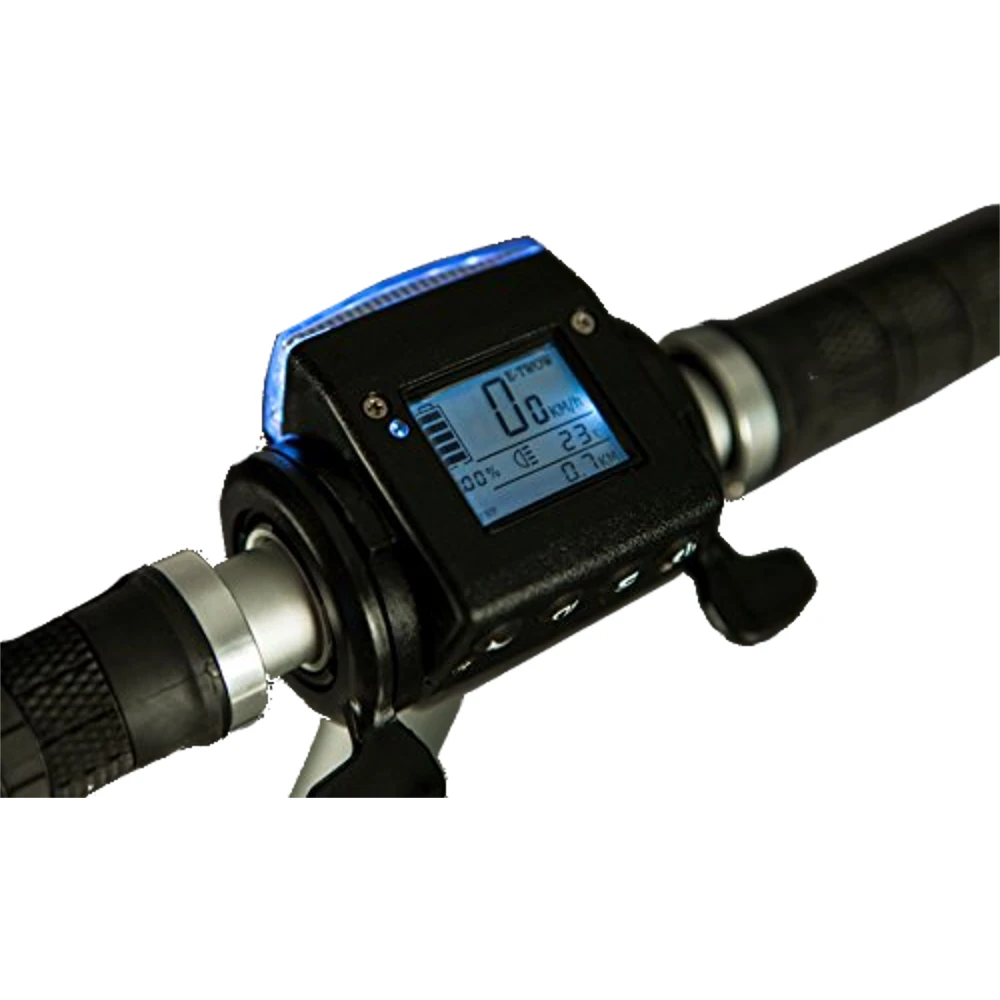 Аккумулятор 6.5 А/ч до полной зарядки необходимо 2 часа, надо просто включить в сеть. Этой емкости хватит на 30 км. На рулевой стойке установлена фара, что сделает вас заметным в темное время. Информационный дисплей позволит легко держать под контролем основные показатели.