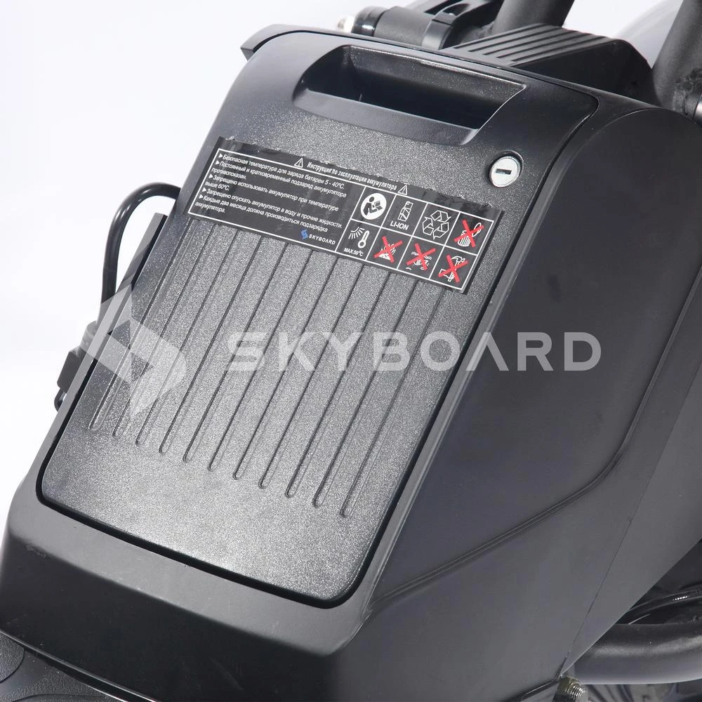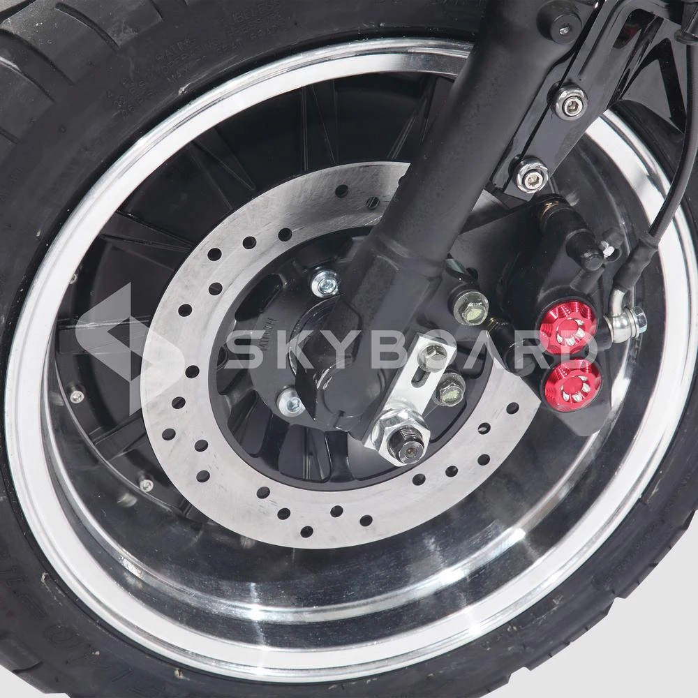Электроскутер Citycoco Skyboard BR70-2WD Красный – симпатичный и компактный скутер, который станет для вас надёжным средством передвижения. Он прекрасно подойдёт для города – его небольшие размеры позволят вам маневрировать как в потоке машин, так и на узких улочках. Также для него легко найти парковку и он не займёт много места в гараже. Данная модель подходит и для поездок на природу – скутер уверенно ведёт себя даже на бездорожье. Стабильность на любой дороге обеспечивают широкие надувные колёса диаметром в 12 дюймов. Удобное эргономичное сидение не позволит вам устать даже в долгой поездке. Позади расположено довольно объёмное место для багажа, а грузоподъёмность скутера составляет 240 килограмм. Также у скутера довольно мощный мотор, позволяющий развивать скорость до 59 километров в час. На одном заряде аккумулятора, вы можете преодолеть 40 км. Скутер снабжён надёжными тормозами, а в тёмное время суток безопасность обеспечит мощная лампа спереди и яркий стоп-сигнал сзади. Также отметим и привлекательный дизайн: стильный с приятным цветовым решением.