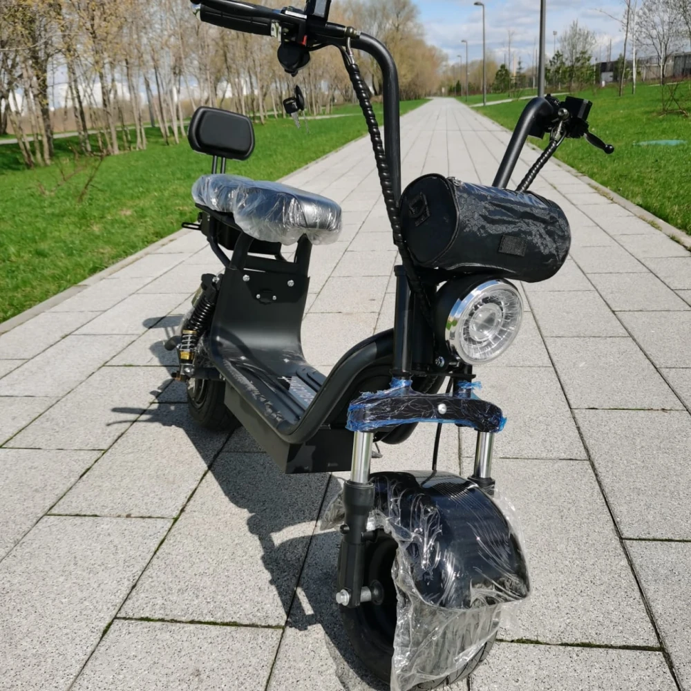 ЭЛЕКТРОСКУТЕР CityCoco WOLONG C2 PRO+ - комфортная современная техника рассчитана на водителя и пассажира. Оснащена анатомическим седлом, пассажирское – с мягкой спинкой. Широкая нескользящая платформа, максимальный функционал, наличие бортового компьютера предрасполагают к безопасному активному отдыху. При мощности электромотора в 800 Вт максимально допустимая скорость составляет 30 км/час. 10-дюймовые колеса рассчитаны на езду по ровной и пересеченной местности. Максимальная грузоподъемность составляет 150 кг. Тест драйв доказал совершенство модели и высокий уровень комфорта.