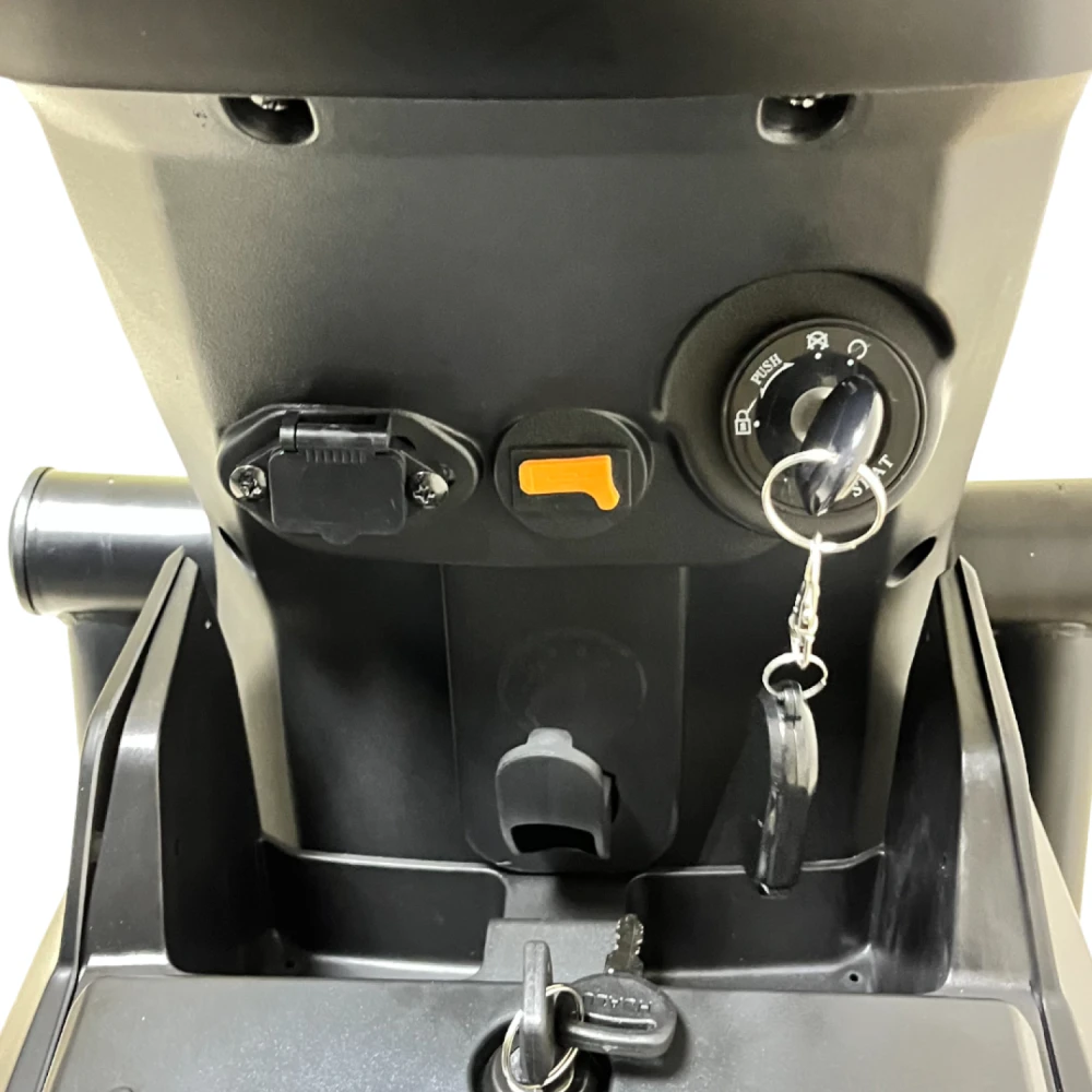 В стандартной комплектации есть гидравлическая подвеска, дисковые тормоза, LED-освещение и информативный дисплей. 12-транзисторный контроллер обеспечивает плавную работу и высокую надёжность электроники. При желании вы можете снять кофр и он превращается в скутер.