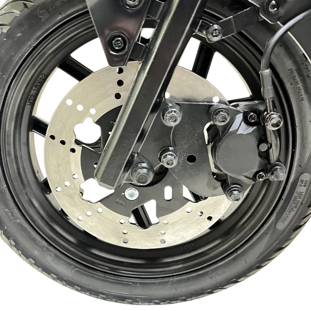 Дисковая гидравлическая тормозная система спереди и сзади, BMS-защита аккумулятора, прочная стальная рама. Мощное LED-освещение обеспечивает отличную видимость ночью. Соответствует современным требованиям безопасности для электротранспорта.