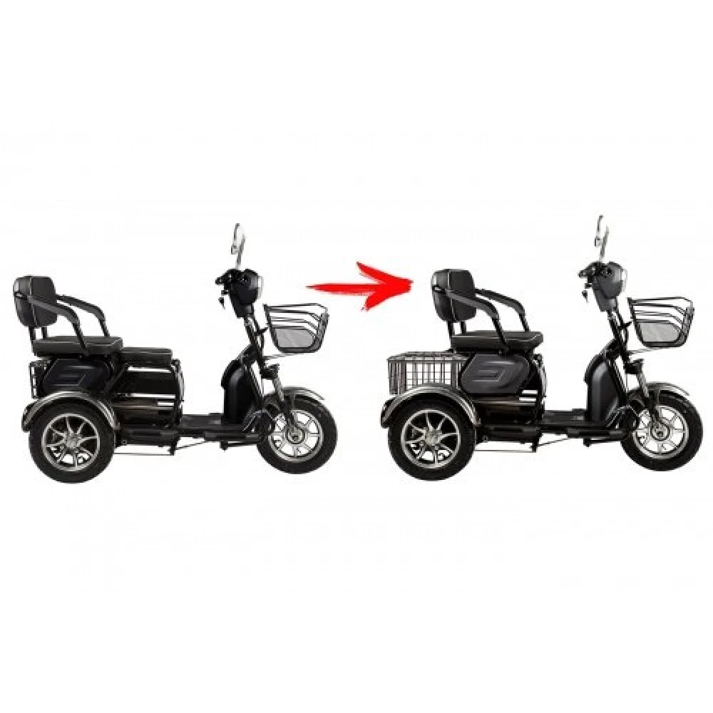 Приятное цветовое решение и совершенные формы заметно радует глаз райдера. Заряд батареи и основные показатели техники отображаются на современном ЖК-дисплее. Модель оснащена надежным двигателем мощностью 500 Вт. Улучшение характеристик техники позволяют развивать максимальную скорость 25-30 км/час. Для повышения комфорта поездок производитель оснастил тс дополнительным пассажирским сидением. Кресла имеют анатомически правильную форму и современное покрытие. Регулируемая рулевая стойка обеспечивает движение без дискомфорта.