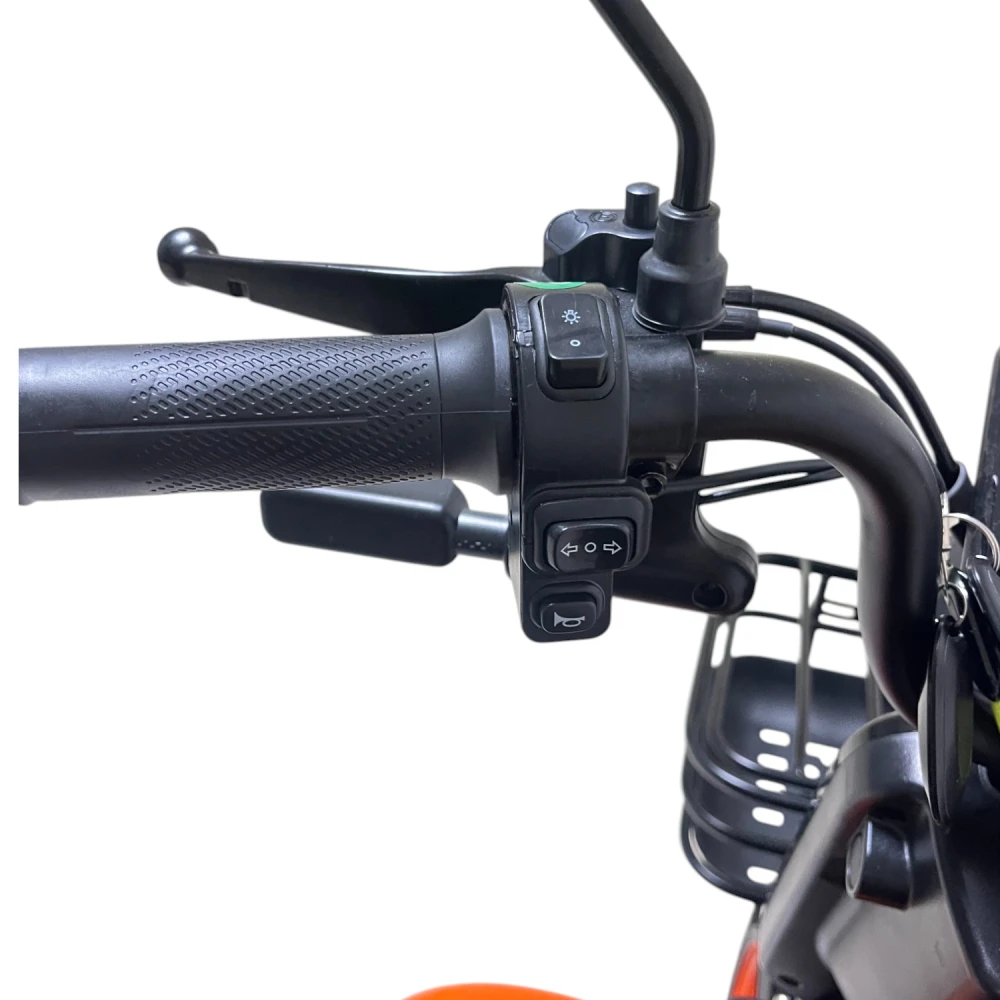 Зеркала, фара, стоп-сигналы, поворотники, корзина и багажник — всё включено «из коробки».