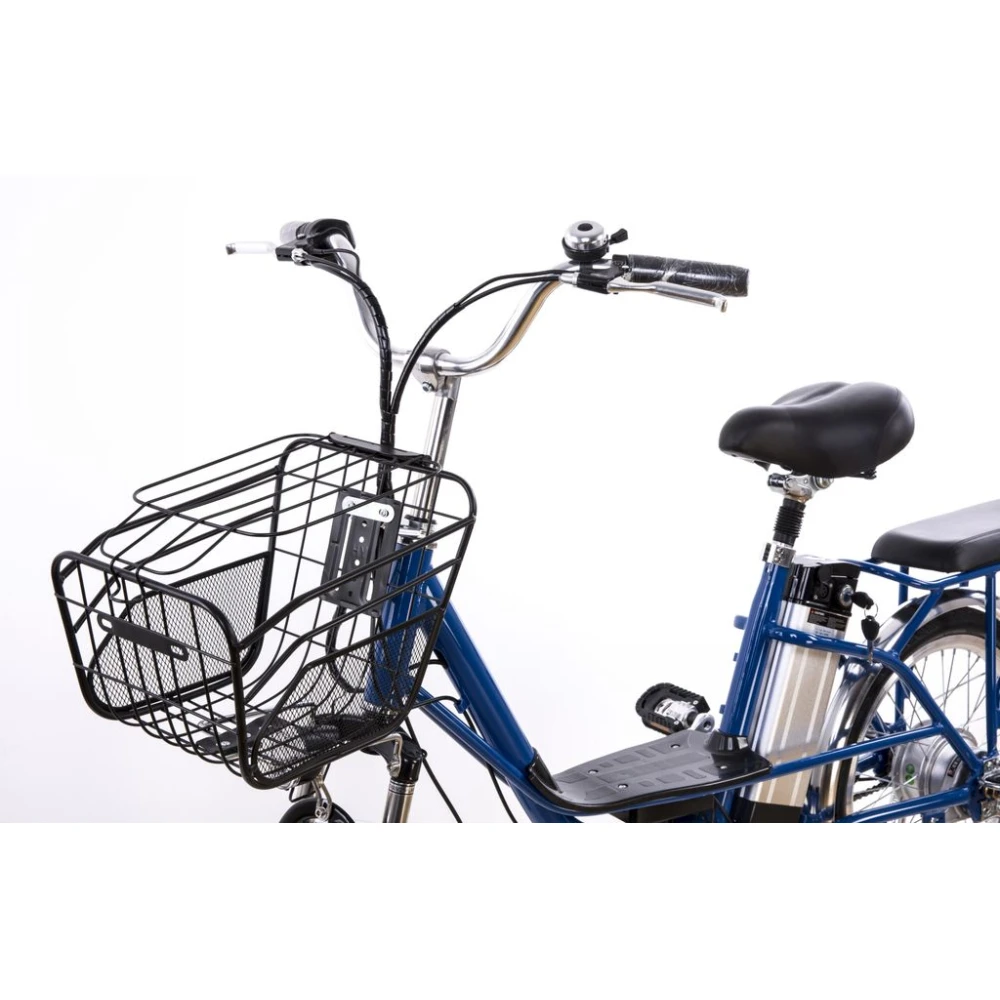 Модель удобная и комфортная. Оснащена 2 сиденьями, водительским и пассажирским. Последнее оснащено спинкой, увеличивающей степень удобства при перевозке детей. Вместительная корзина удобна при посещении магазинов и отдыхе на природе.