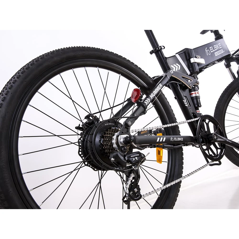 Электровелосипед ELBIKE HUMMER VIP – мощная модель, которой под силе и городские дороги, и бездорожье с его преградами. В наличии большие 26-дюймовые спицевые колеса и двойная подвеска. Мотор встроен в заднее колесо и имеет мощность в 500ватт. Аккумулятор скрыт в раму, его емкость – 10,5 ампер, что позволяет проехать до 35 км без подзарядки.