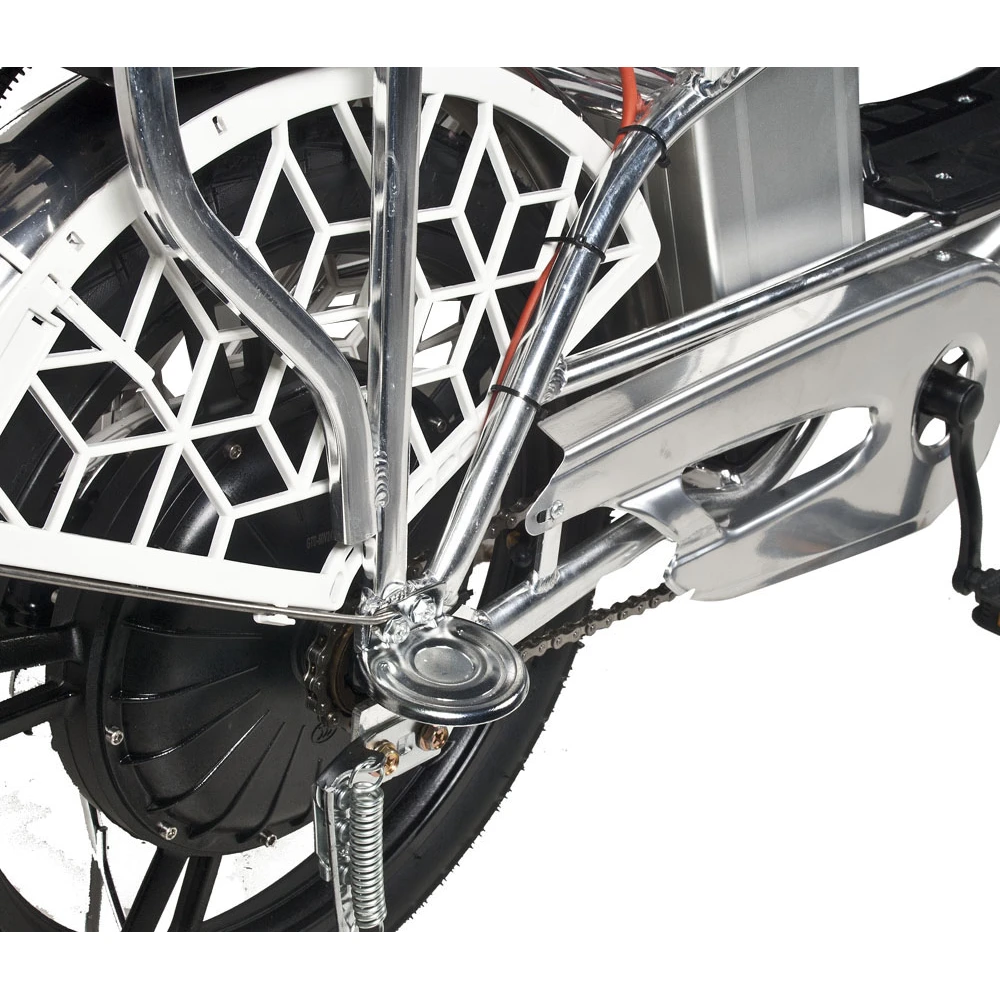 Электровелосипед оснащен надежным двигателем мощностью 500 Вт, позволяющим развивать скорость 50 км/час. Для обеспечения безопасности и контроля за показателями движения модель оборудована бортовым компьютером. Надежная батарея позволяет преодолевать расстояния на одном заряде 55 км. Вес модели небольшой (33 кг) дает возможность свободно маневрировать на дороге. Функция перехода на педальный режим предотвращает возникновение форс мажорных ситуаций в поездках. Для идеального сцепления с дорогой любого покрытия электровелосипед имеет широкие колеса с мощным протектором.