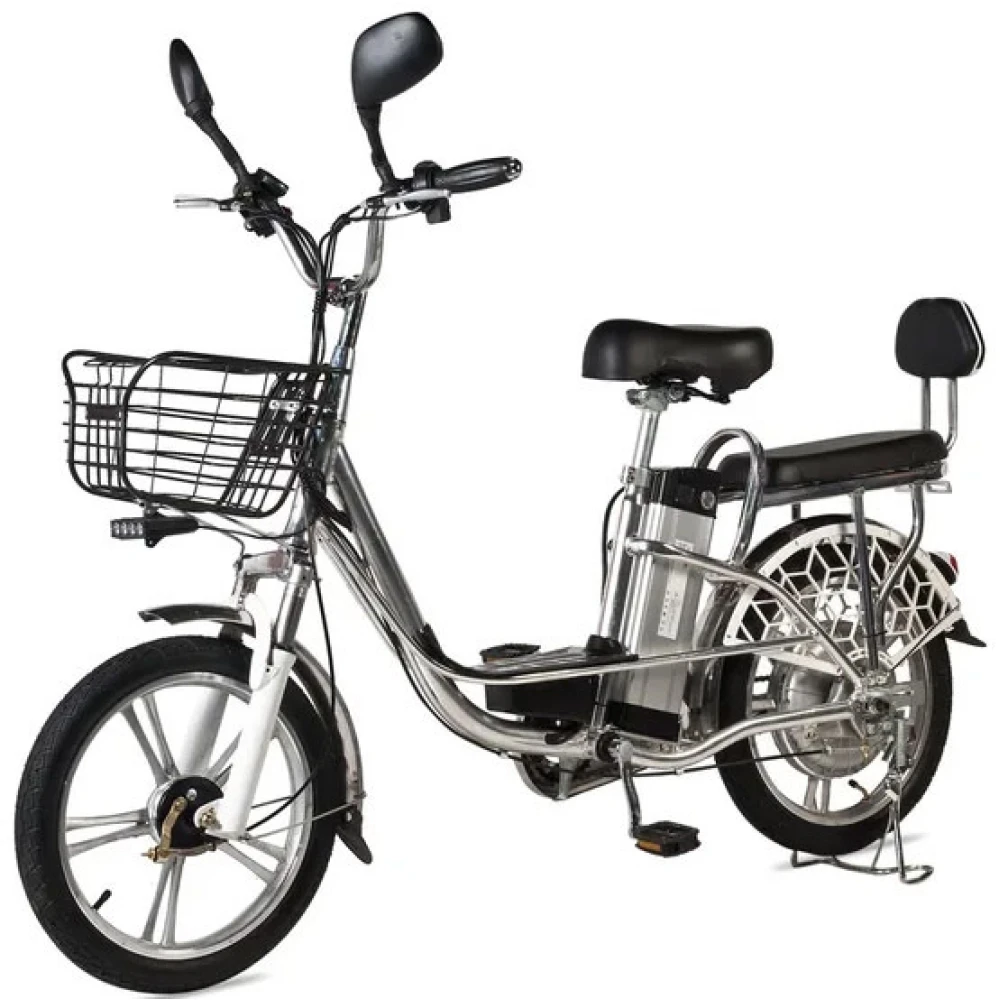 Наличие передней объемной корзины автоматически превращает электровелосипед в каждодневный вид транспорта, удобный для поездки в магазин за продуктами.
