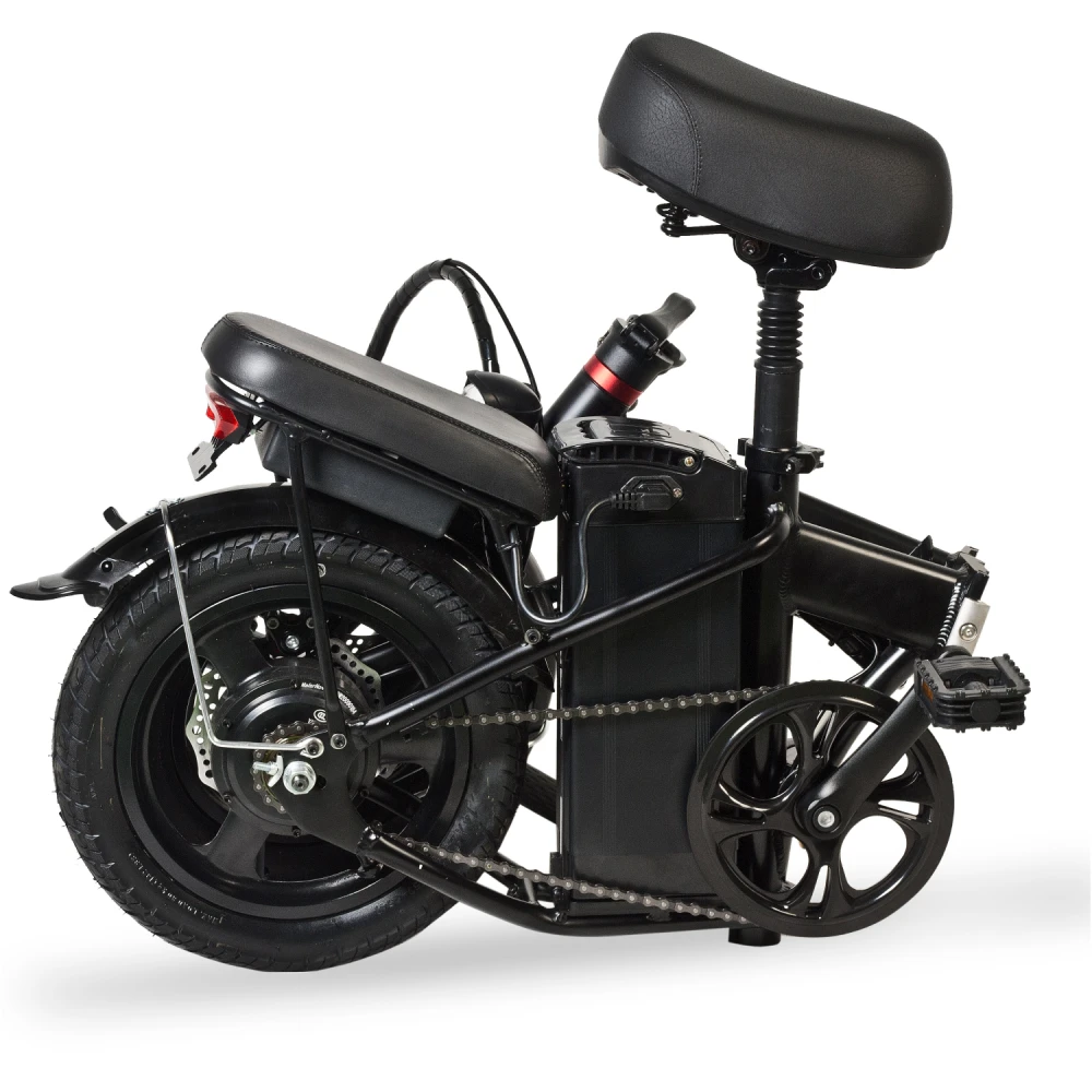 В новой модели производитель обновил комплектующие, сделав модель лучшей по скоростным параметрам. Электровелосипед при мощности мотор-колеса способен развить скорость до 40 км/час и проехать на одной подзарядке до 40 км. Емкая фирменная АКБ размещена в нижней части, сбоку от седла, не мешает райдеру, легко снимается для подзарядки.