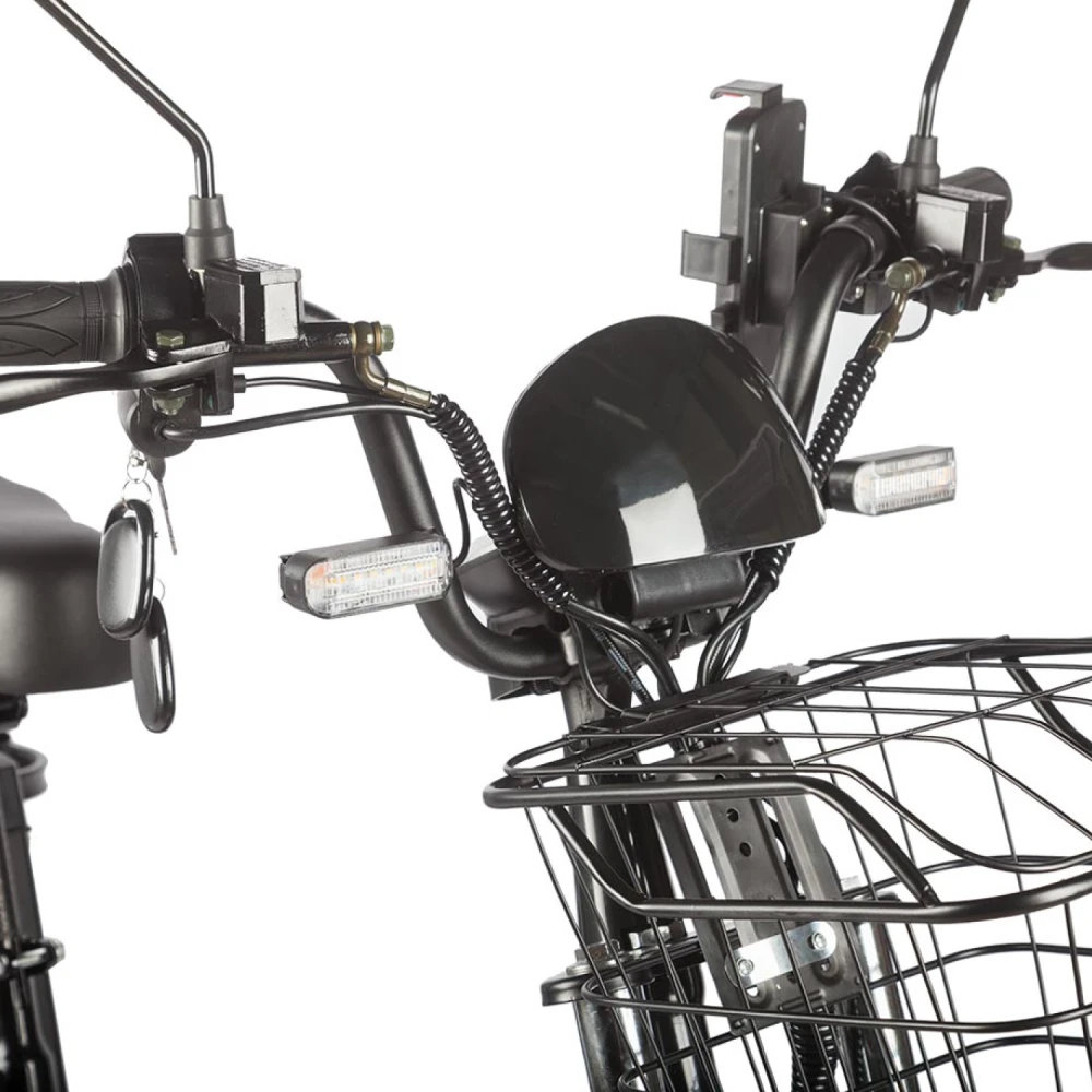 Электровелосипед Eltreco Gelbert Khan Monster 1 – это современное средство передвижения, сочетающее в себе продуманную конструкцию, передовые технологии и стильный дизайн для уверенных городских и пригородных поездок.Модель оснащена передним и задним амортизаторами, которые эффективно смягчают неровности дороги, обеспечивая плавность хода и комфорт даже на пересеченной местности. При заявленном максимальном пробеге до 100 км на одном заряде этот велосипед подходит для длительных поездок – конечно, реальные показатели зависят от веса райдера, рельефа местности, погодных условий и температуры окружающей среды.Безопасность обеспечивается за счет дисковых гидравлических тормозов, которые гарантируют надежное и своевременное торможение в любых ситуациях. Легкий вес в 57 кг позволяет легко маневрировать, а максимальная нагрузка до 150 кг делает модель универсальной для разных категорий пользователей.Двигатель мощностью 240 W, размещенный в задней части, обеспечивает эффективное ускорение и оптимальное распределение энергии, что способствует стабильной работе в условиях городской среды. Электровелосипед оборудован аккумулятором с емкостью 21 Ah и рабочим напряжением 60 V, что гарантирует долгий срок службы батареи и надежную работу даже на длинных маршрутах.Габариты в собранном состоянии – 1700×1150×800 мм – обеспечивают удобное расположение для водителя, а использование качественной стали в конструкции гарантирует долговечность и надежность всей системы. Дополнительное оснащение включает зеркала заднего вида, которые повышают безопасность, а встроенные передние и задние габаритные фары обеспечивают отличную видимость в условиях недостаточной освещенности.Стоит отметить, что данная модель не является складной, что подчеркивает ее прочную и стабильную конструкцию, рассчитанную на долгосрочную эксплуатацию. Электровелосипед Eltreco Gelbert Khan Monster 1 – это оптимальное решение для тех, кто ищет сочетание высоких технологий, надежности и комфорта в одном устройстве.