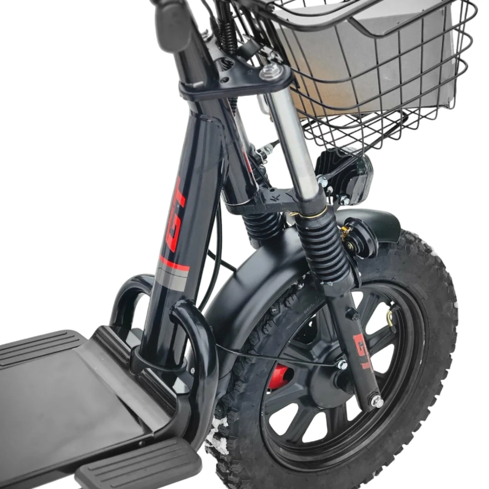 Стальная рама, рассчитанная на нагрузку до 200 кг, и двухподвесная амортизация с регулируемой жесткостью превращают поездки в удовольствие даже на брусчатке или бездорожье. Гидравлические дисковые тормоза на обоих колесах гарантируют остановку «одним касанием», а 16-дюймовые колеса обеспечивают маневренность в плотном потоке.