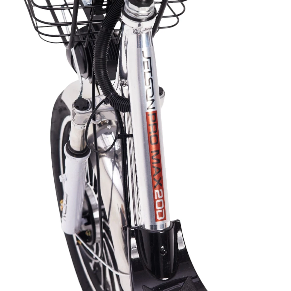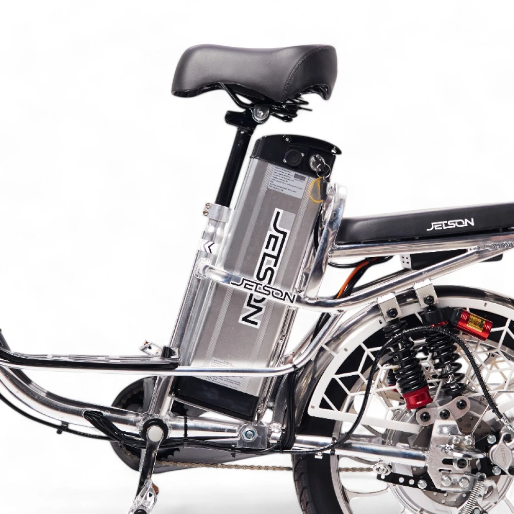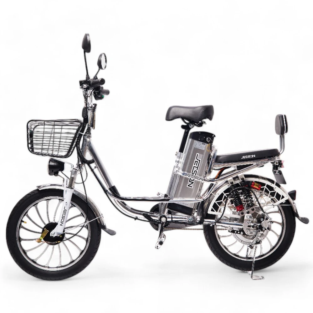 Электровелосипед Колхозник Jetson PRO MAX 20D (60V21Ah) 2024 года — это сочетание мощности и комфорта в классическом формате "колхозник". Оснащенный задним гидравлическим дисковым тормозом и передним барабанным, он обеспечивает надежное торможение в любых условиях. Мощный двигатель на 500W и литые диски делают поездку динамичной и устойчивой. Велосипед выполнен в стильном серебристом цвете и имеет большую платформу для ног, что добавляет удобства. Удобное большое сиденье и амортизация спереди и сзади обеспечивают комфорт даже на длительных маршрутах. Съемный аккумулятор на 21 Ah, расположенный за сиденьем, позволяет преодолевать до 90 км в режиме ассистента. Алюминиевая рама делает конструкцию легкой и прочной, идеально подходящей для городских и загородных поездок.