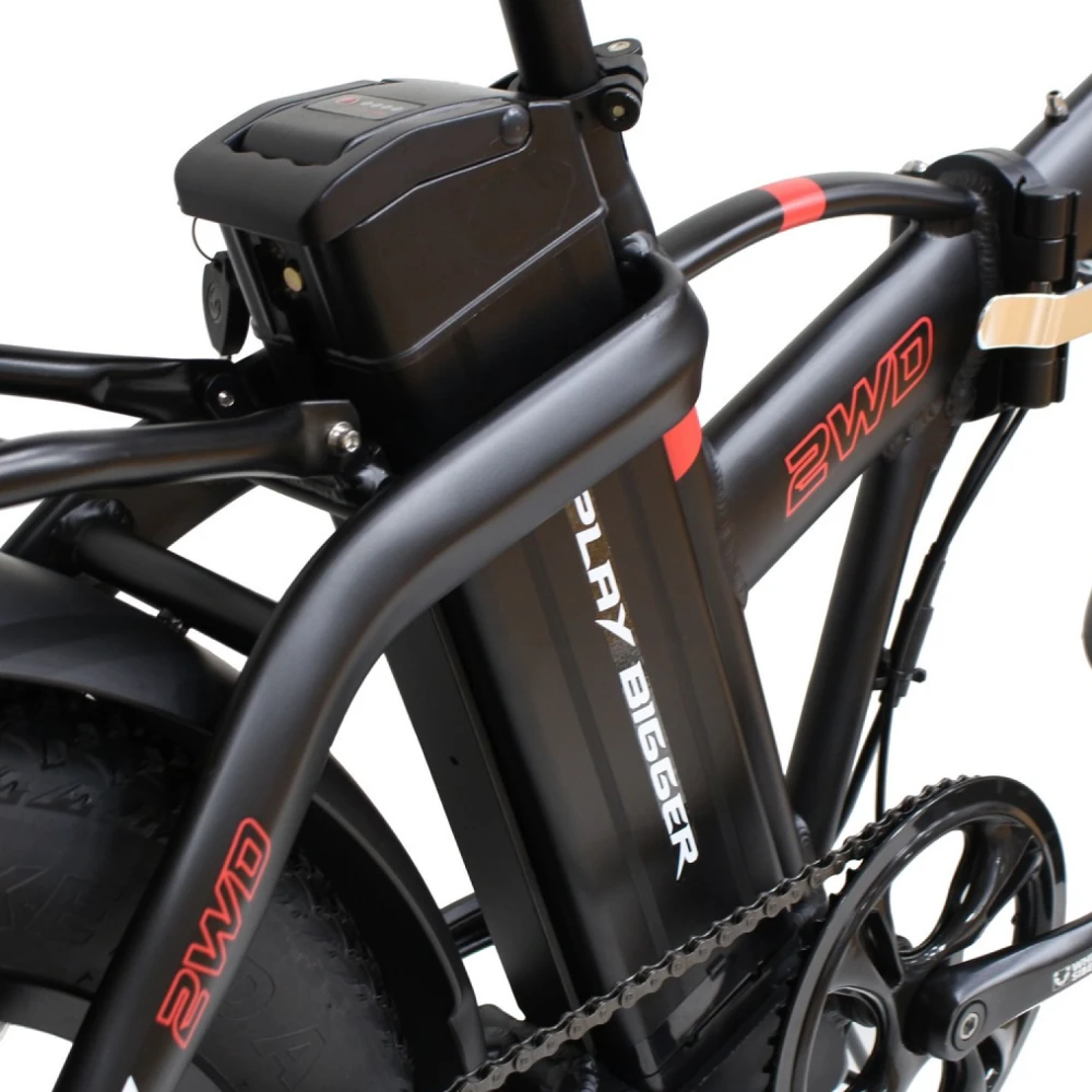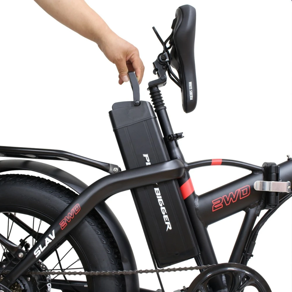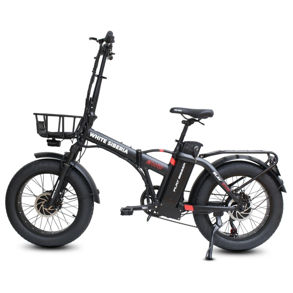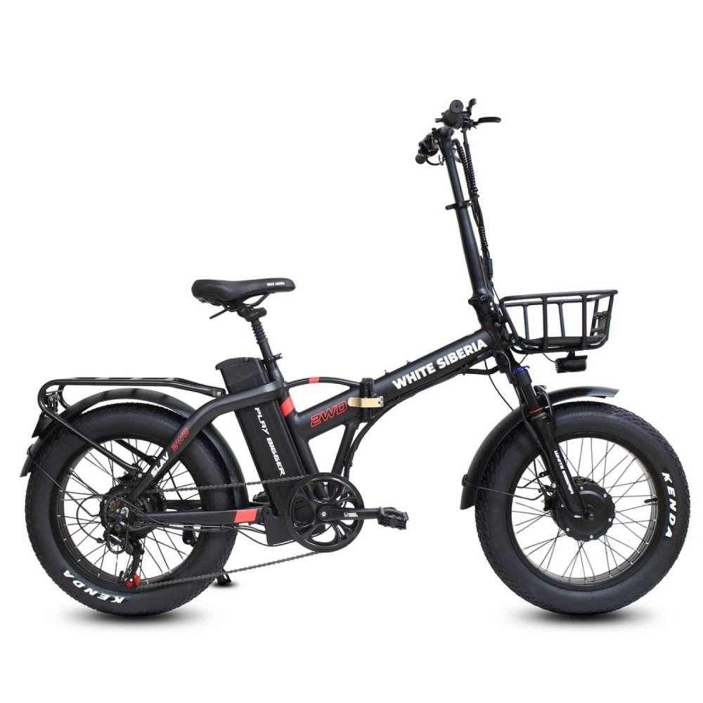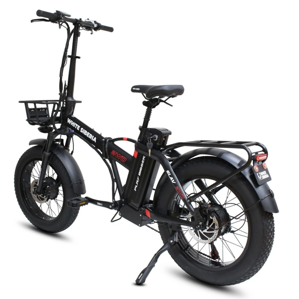 WHITE SIBERIA SLAV 2WD 2000 Вт — это складной фэтбайк с полным приводом, оснащённый двумя мощными электродвигателями по 1000 Вт каждый, что обеспечивает суммарную мощность 2000 Вт. Благодаря этому велосипед легко преодолевает крутые подъёмы и сложные участки дороги, делая поездки комфортными и динамичными как в городе, так и за его пределами.