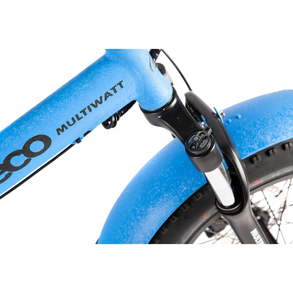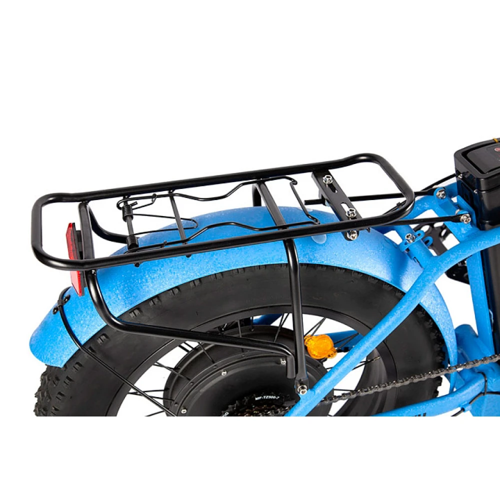 Литий-ионная батарея легко снимается с рамы и полностью заряжается в течение шести часов, после чего велосипед может проехать до 50 километров без подзарядки. Колёса диаметром 20 дюймов и шириной 4 дюйма обладают повышенной проходимостью и легко справляются с ездой по снегу, грязи и даже песку. От брызг райдера защищают металлические крылья на обоих колёсах. Передняя амортизационная вилка поглощает неровности, обеспечивая плавность хода как на городских улицах, так и на загородных трассах.