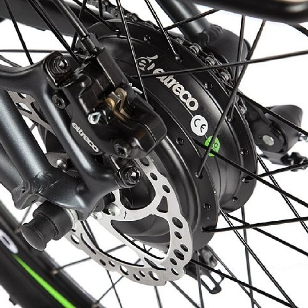 Двигатель представляет собой электромотор с мощностью 500 W, позволяющий разгоняться до 38 км/ч. Мотор-редуктор дает возможность легко прокручивать педали. Электровелосипед питается за счет 10 Ah Li-ion батареи, с напряжением 36 В . Аккумулятор быстросъемный, при необходимости быстро снимается с помощью ключа. Максимальный пробег за один заряд составляет 50 км.