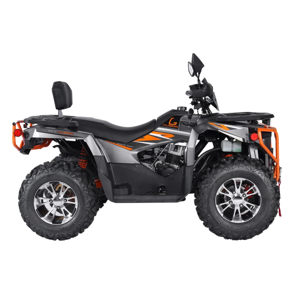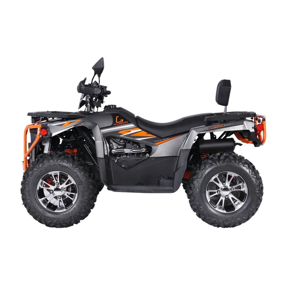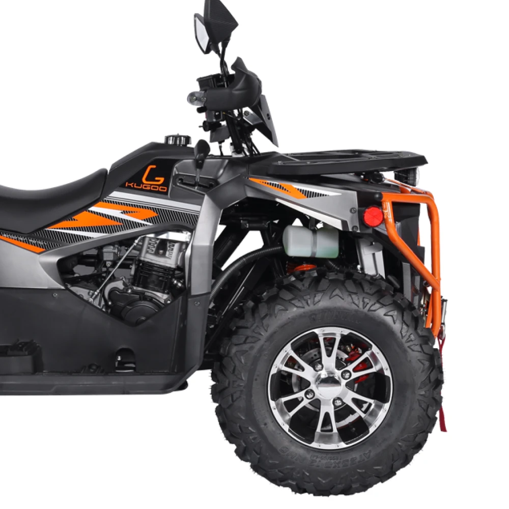 Kugoo K5 — это надёжный полноприводный квадроцикл с мощным бензиновым двигателем, рассчитанный на активную езду как по пересечённой местности, так и по грунтовым дорогам. Он создан для тех, кто хочет чувствовать свободу в движении, управлять техникой уверенно и получать максимум удовольствия от каждой поездки.
