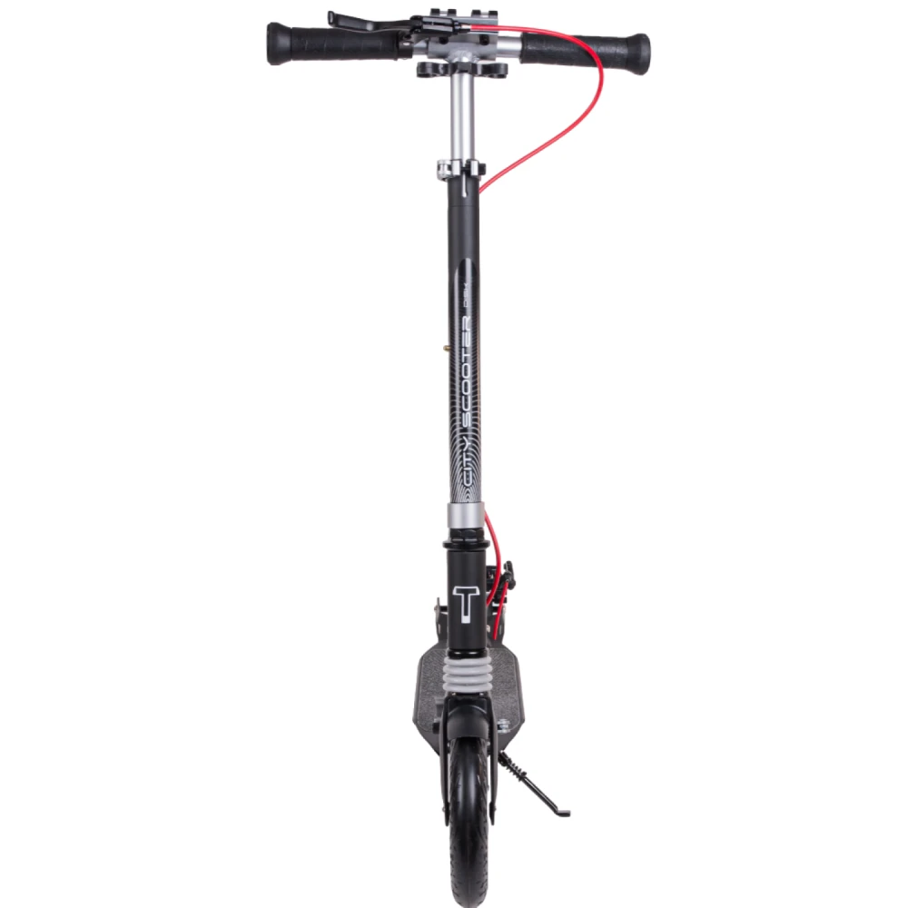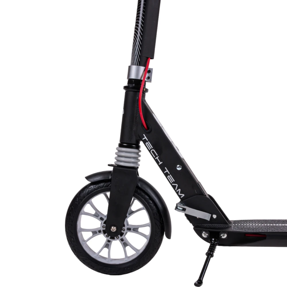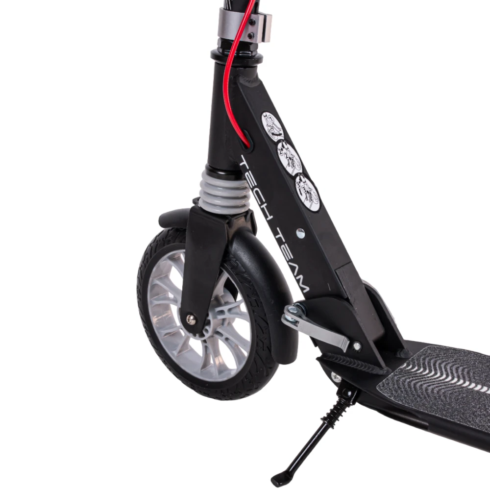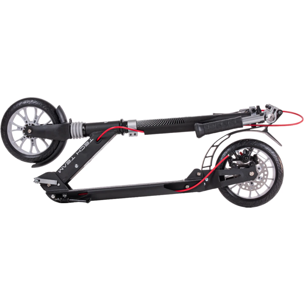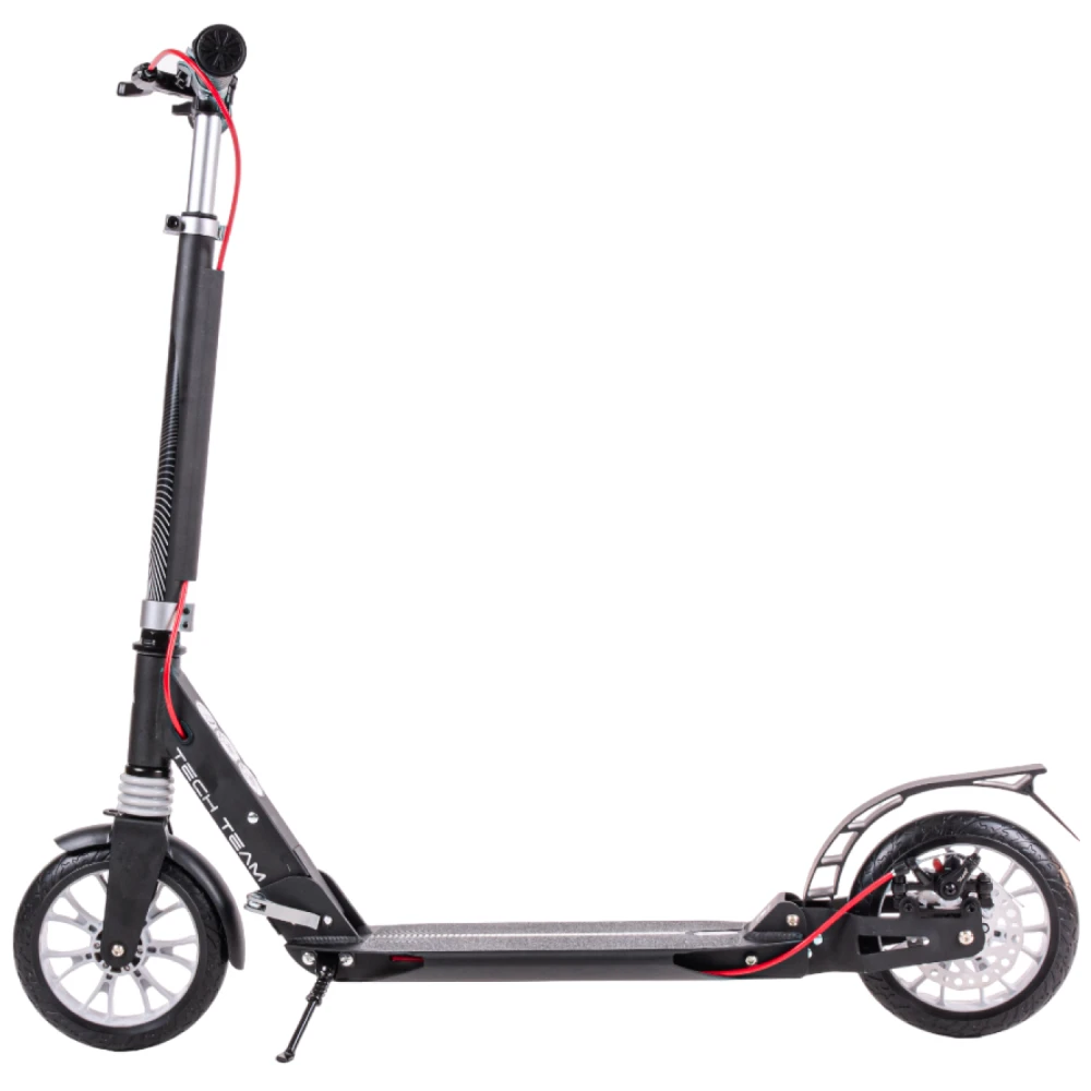 Самокат городской tech team city scooter disk brake серый – лучшее предложение этого года. Предназначена для начинающих райдеров массой до 50 кг. Изготовлен из облегченного высокопрочного алюминия, имеет вес 6,1 кг. Для приобретения техники по лучшей цене, получения бесплатной консультационной помощи предлагаем стать покупателями нашего интернет-магазина. Из преимущественных качественных характеристик производитель выделяет надежную прочную платформу и накатистые скоростные колеса. Рулевая часть долговечная, не деформируется при максимальных нагрузках, регулируется в 3-х положениях, от 88 см до 104 см. Прорезиненные анатомические грипсы исключают скольжение, увеличиваю хват руки и степень безопасность езды. Платформа по ширине и длине составляет 136мм*400 мм, устойчивая и нескользящая благодаря фирменной шкурке. 200ммм колесная часть гарантирует максимальный накат. Оснащенность техники современными подшипниками обещает максимальный разгон. Возможность складывания позволяет быстро трансформировать технику до минималистичных размеров, что очень удобно при перевозке в машине и хранении в квартире. Если в начинающий райдер, производитель рекомендует обратить внимание именно на этот вариант техники. Купить модель можно посредством связи с менеджером в телефонном или онлайн-режиме.