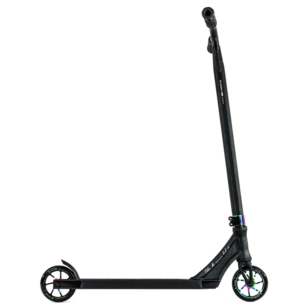 Ethic Erawan V2 (S) neochrome — это не просто трюковой самокат, а настоящее произведение искусства в мире экстрима. Сочетание строгих черных тонов с яркими дисками и хомутом в градиентном цветовом исполнении с эффектом бензина создает уникальный стиль, который привлекает внимание и подчеркивает индивидуальность райдера. Этот самокат весит всего 2.79 кг, что делает его невероятно легким и удобным для выполнения трюков любой сложности.Колеса диаметром 110 мм и высококачественные подшипники класса ABEC 9 обеспечивают плавность и стабильность движения, позволяя райдеру полностью сосредоточиться на выполнении трюков.