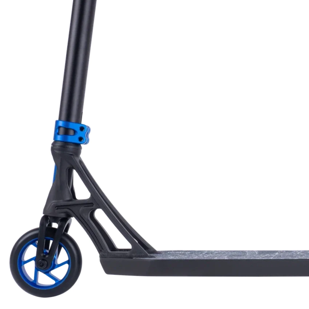 Трюковой самокат Tech Team Kvant 2023 Синий имеет аэродинамический дизайн, который дает возможность ездить с высокой скоростью без вибрации и скольжения на выпускном выходе, благодаря своей четкой структуре и надежным компонентам.