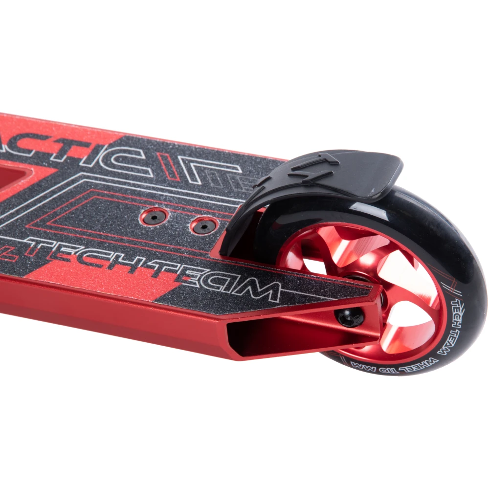 Дека изготовлена из алюминиевого сплава 6061 и имеет данные габарты: 49х11,5см, футспейс 34см. Нововведением считаются вырезы, которые сделали внешний вид самоката более дерзким. Тормоз из нейлона и стали отлично справляется со своим предназначением.