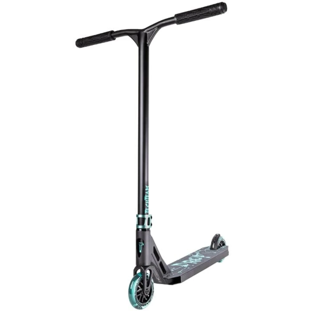 Качественная колесная часть с черно-бирюзовыми полиуретановыми колесами способна сотворить чудеса, выполнять рискованные трюки слушаясь пользователя на 100 %.