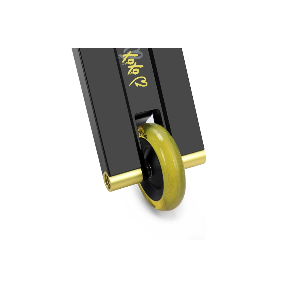 Колесная часть представлена алюминиевыми дисками с параметрами жесткости 88А, имеет диаметр 110 мм, допускает езду по городской местности и парковой зоне. Технические характеристики самоката подходят для новичков, а также более продвинутым пользователям с параметрами роста 168-185 см.