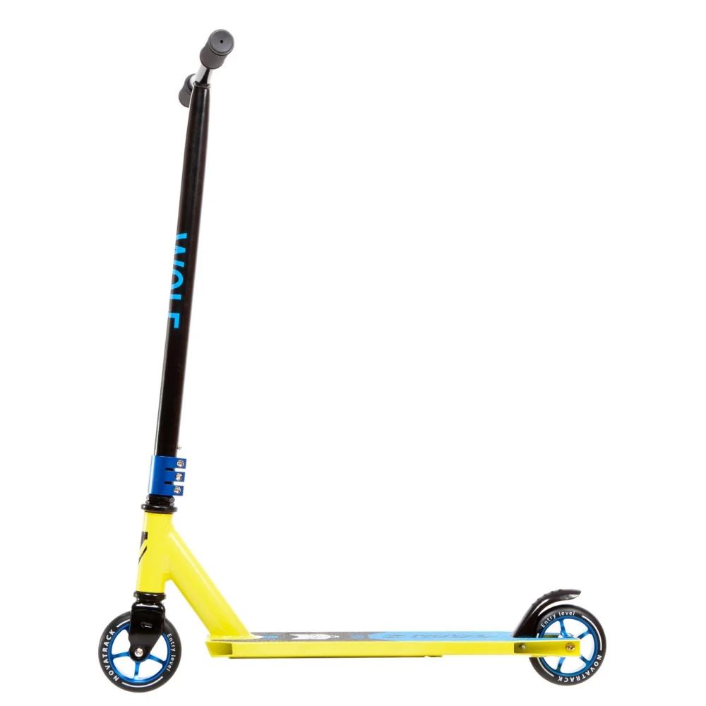 Трюковый самокат Novatrack WOLF 40 черно-лимонный — это идеальный выбор для тех, кто хочет выделяться на улице и в скейт-парке. С максимальной нагрузкой до 100 кг, этот самокат подходит для райдеров от 8 лет и старше. Стальная вилка и подшипники класса ABEC-7 обеспечивают долговечность и плавность хода. Дека шириной 10 см с покрытием «шкурка» гарантирует отличное сцепление и контроль при выполнении трюков. Алюминиевые обода и полиуретановые колеса диаметром 110 мм добавляют устойчивость и комфорт. Резьбовая рулевая система и высота руля 83 см делают управление самокатом легким и точным. Задний ножной тормоз обеспечивает безопасность и мгновенную остановку. Novatrack WOLF 40 черно-лимонный — для смелых и уверенных в себе райдеров!