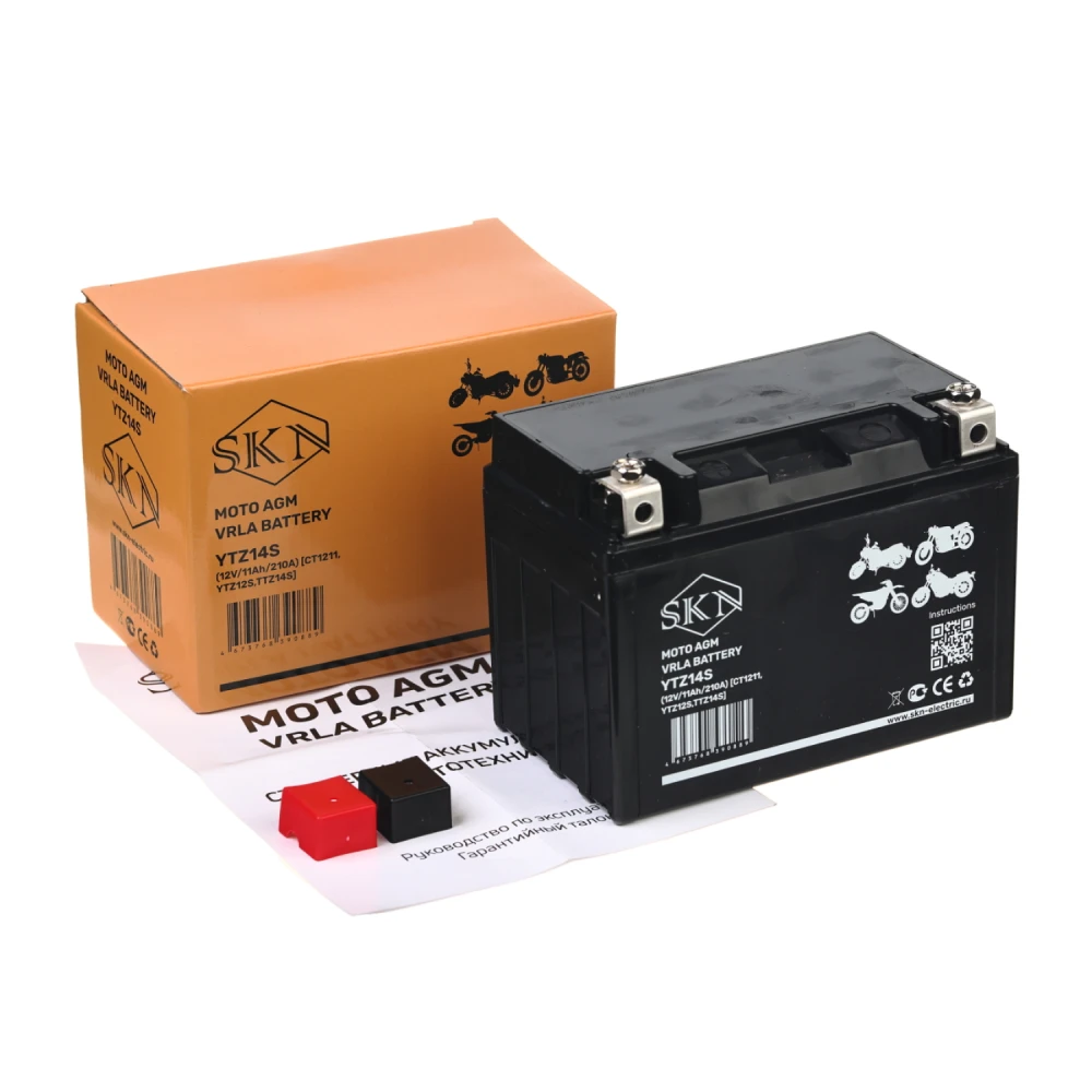 Аккумулятор стартерный для мототехники SKN YTZ14S (12V/11Ah/210A) [CT 1211, YTZ12S,TTZ14S]